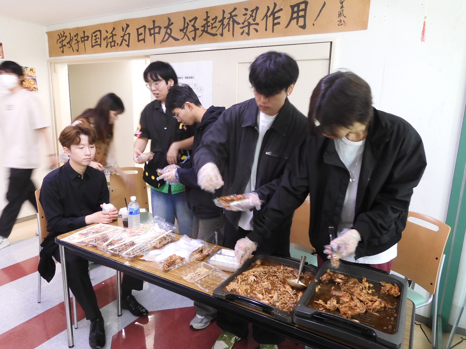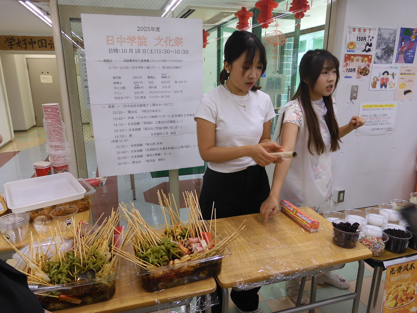 10月18日(土)恒例の日中学院文化祭を開催しました。学院内で行われた模擬店では、可乐鸡翅、麻辣烫、鸡爪、冰粉、双皮奶、茶叶蛋など中華の味が並び、多くの来場者で食券が売り切れるほどの大盛況でした。
