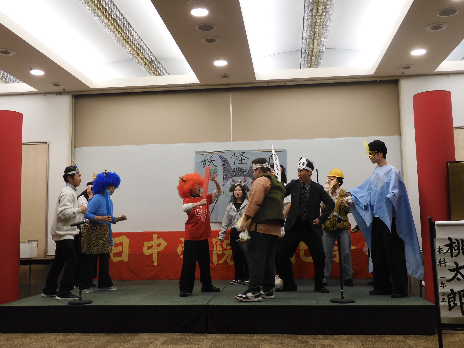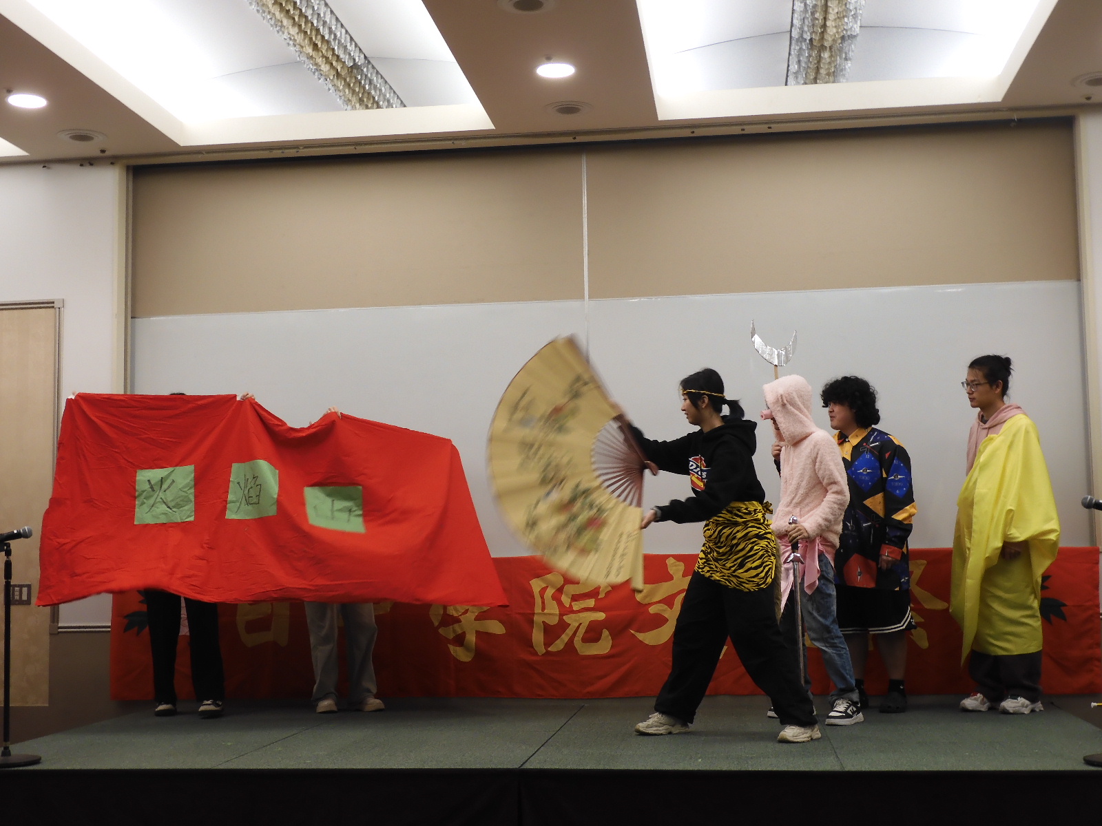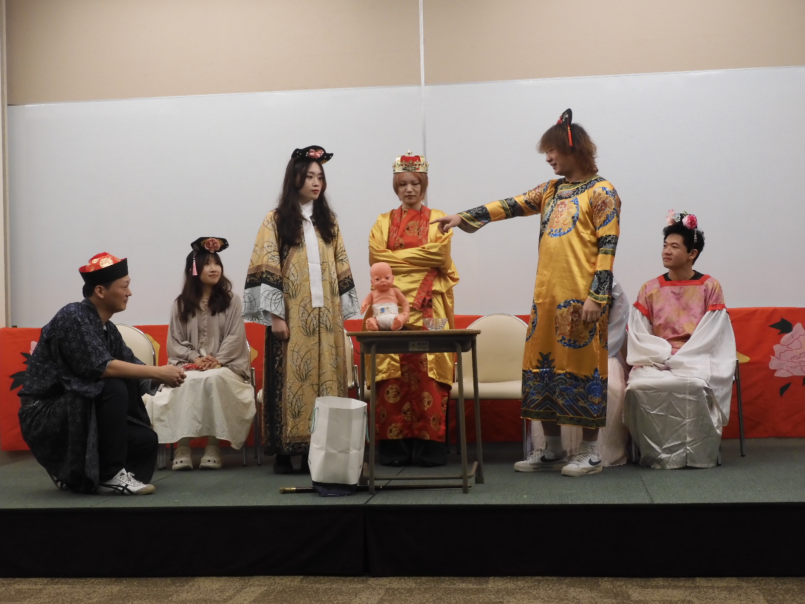 午後の舞台発表では、留学生は日本語劇、本科生は中国語劇を上演しました。特に今年は留学生の演目が多く、衣装、演出、音響など工夫を凝らした劇の他、プロのような声楽コンサートもありました。