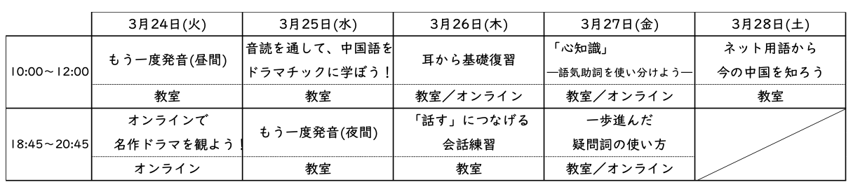 | 日 時: | 3月24日(火) 10:00〜12:00 / 3月25日(水) 18:45〜20:45 |